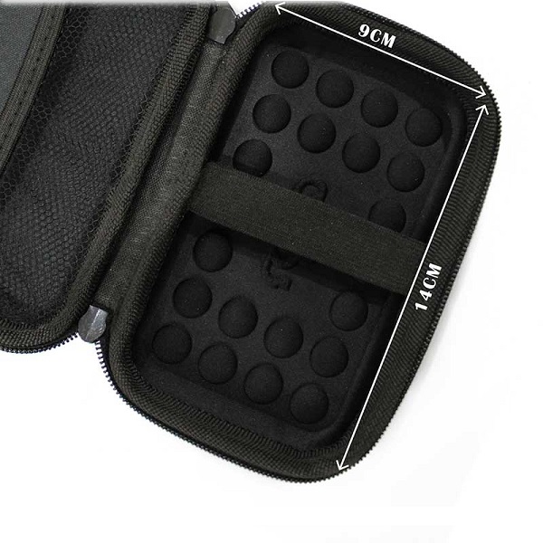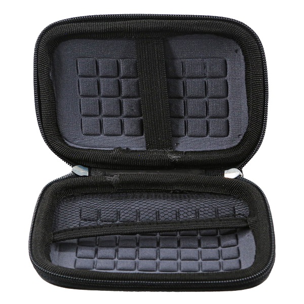 کیف هارد اکسترنال بدنه ای کاملا ضد ضربه، محکم و مقاوم دارد. قسمت داخلی کیف از دو بخش تشکیل شده است که یک بخش محل مناسبی برای حمل ایمن و محافظت از هارد بوده و بخش دیگر جهت قرار گیری کابل، فلش و... می باشد. ابعاد داخلی کیف حدود 9 × 14 سانتیمتر می باشد.
