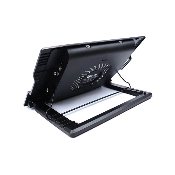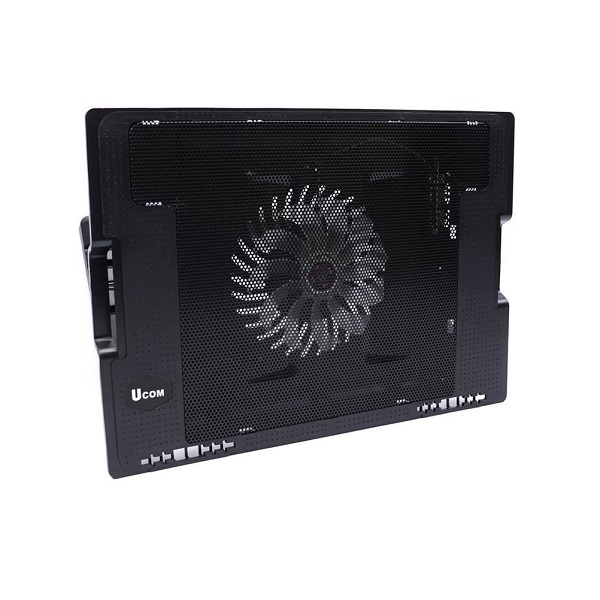 کول پد یا خنک کننده زیر لپ تاپ یوکام مدل 638B بصورت تک فن بزرگ ساخته شده که با صدای کم و امکان تغییر زاویه قرار گیری، میتواند گرمای لپ تاپ را کاهش دهد و به عملکرد بهتر کامپیوتر شما کمک کند. دو پایه ابری لپ تاپ را در سطح شیبدار نگه می دارد. این کول پد دارای پایه قابل تنظیم تا 5 زاویه مختلف می باشد.