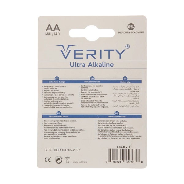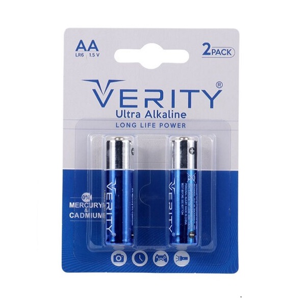 امروزه باتریها در اکثر وسایل زندگی، از لوازم خانگی ساده گرفته تا دستگاههای هوشمند، کاربرد دارند. این مدل باتریهای قلمی Verity بهصورت بستههای 2 عددی تولید شده است. تکنولوژی ساخت این نوع باتری از نوع آلکالاین است. باتریهای آلکالاین طول عمر زیادی داشته و تا شش برابر بیشتر از باتریهای معمولی عمر میکنند.